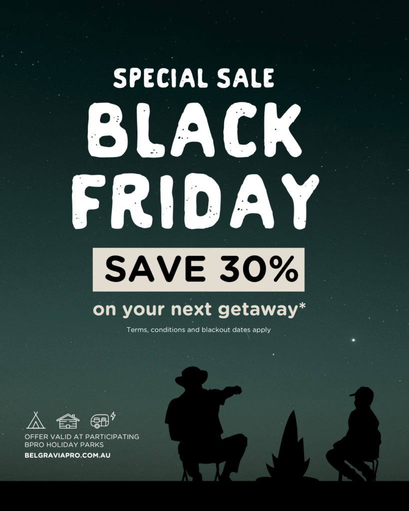 Offer is valid at selected Bpro properties only. Offer cannot be used in conjunction with any other offer including G’day Parks Member discount.