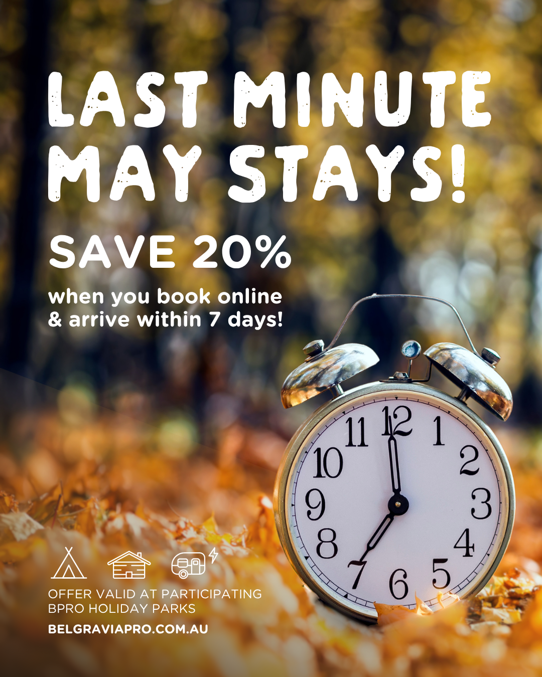Book online and arrive within 7 days at Blackheath Glen Tourist Park to enjoy a whopping 20% off your stay!